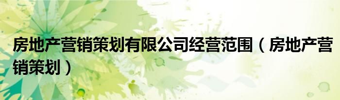 房地产营销策划有限公司经营范围(房地产营销策划)
